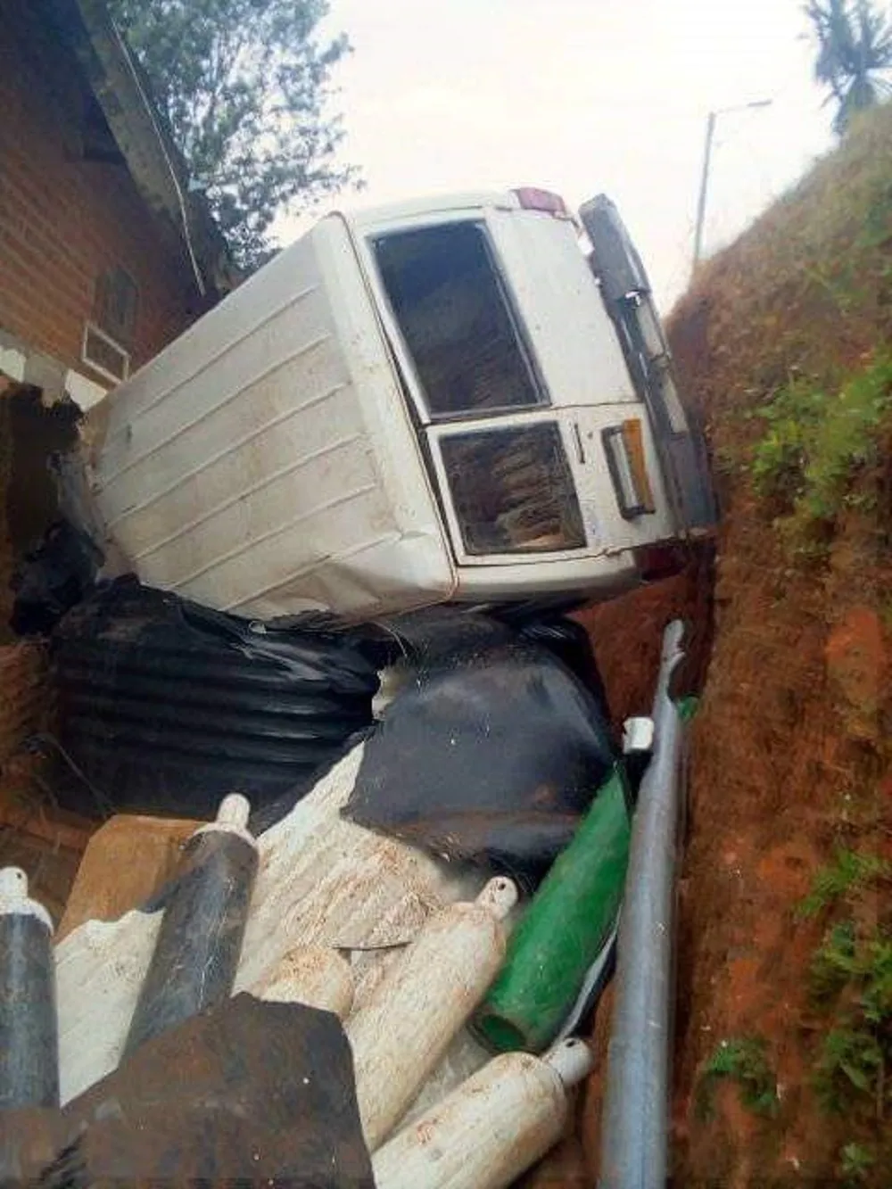 Ngo umushoferi yasubiye inyuma atabanje kureba mu ndorerwamo ndebanyuma( retroviseur) imodoka ihanuka mu mukingo uhari igonga inzu z’ibitaro bya Murunda, irangirika.