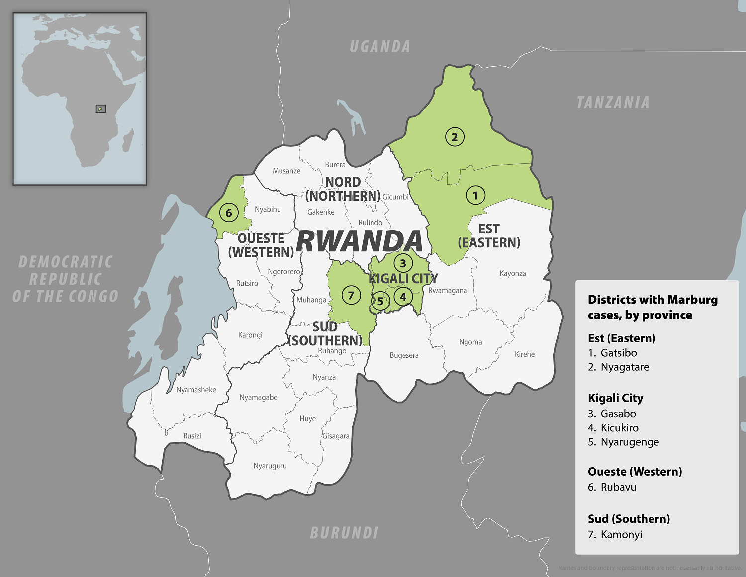 Minisiteri y’Ubuzima ivuga ko kuva hatangazwa ko indwara ya Marburg yageze mu Rwanda, abarwayi bashya n’abo bahuye babonetse muri bimwe mu bitaro byo mu Mujyi wa Kigali, bose bashyizwe mu kato kandi bitabwaho n’abaganga.