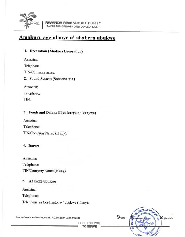 Guhera kuri uyu wa Mbere mu masaha y’umugoroba, hari inyandiko yari yatambutse ku mbuga nkoranyambaga isa nigaragaza ko hari umusoro mushya washyizweho ku batanga serivisi zo gutiza abantu amahema y’ubukwe, abashyushyarugamba( Masters of Ceremonies, MC), abatanga indangururamajwi n’abandi banyabirori.