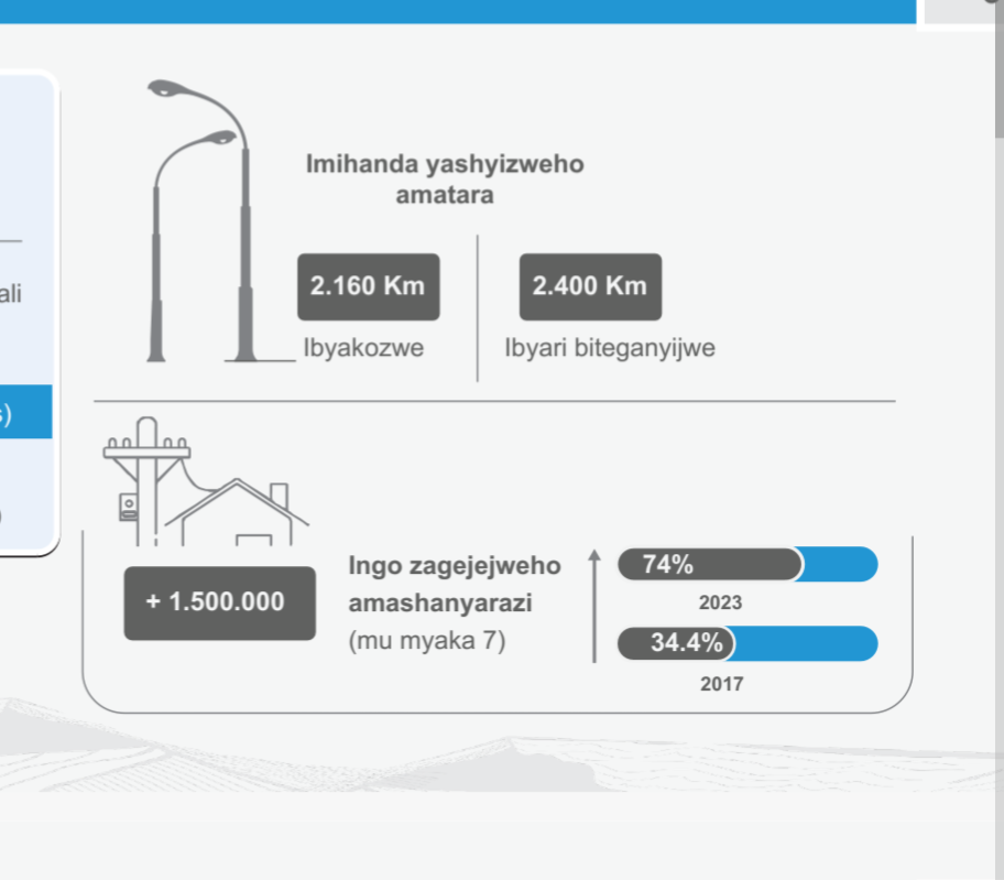 Mu mwaka wa 2017 ingo zingana na 34.4% nizo zari zifite amashanyarazi ariko mu mwaka wa 2023 zageze kuri 70%.