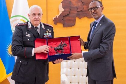 Nyuma yo kubonana na mugenzi we uyobora Polisi y’u Rwanda, Umukuru wa Polisi y’u Butaliyani Lt General Teo Luzi yahuye na Perezida Paul Kagame muri Village Urugwiro. Gen Luzi ari mu Rwanda mu ruzinduk...