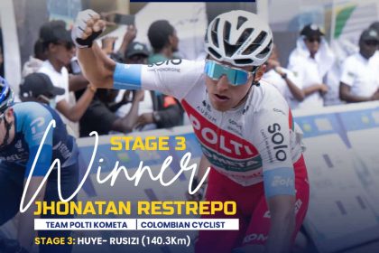 Jhonatan Restrepo wo muri Colombia niwe watwaye agace ka Tour du Rwanda kavaga i Huye kagana i Rusizi mu Murenge wa Kamembe. Uyu mugabo asanzwe akinira ikipe yitwa Polti Kometa...