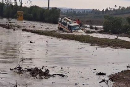 Imbangukiragutabara yari irimo umurwayi yageze ahitwa Rwabiharamba mu Murenge wa Karangazi mu Karere ka Nyagatare ihura n’’umuvu w’amazi w’imvura iheramo. Abaturage batabaye bayikuramo n’abari bayiri...