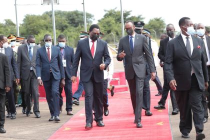 Perezida Paul Kagame yamaze kugera i Lusaka muri Zambia mu ruzinduko rw’akazi azamaramo iminsi ibiri. Ku kibuga mpuzamahanga cy’indege cya Lusaka Kagame yakiriwe na mugenzi we Perezida wa Zambia Hakai...