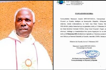Kiliziya Gatulika y’u Rwanda yabuza abapadiri babiri batabarutse. Umwe ni Padiri Jean Damascène Kayomberera wa Diyosezi Gatolika ya Cyangugu, ndetse na Padiri Jean Marie Vianney Muzeyi Sekabara wa D...