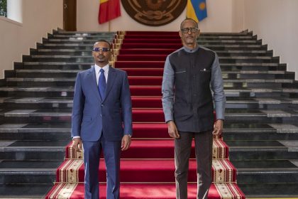 Gen Mahamat Idriss Déby Itno uyoboye Tchad muri iki gihe ari i Kigali. Yahageze ahagana saa saba z’amanywa kuri uyu wa Gatandatu, taliki 18, Werurwe, 2022. Yakiriwe na Perezida Kagame mu Biro bye bagi...