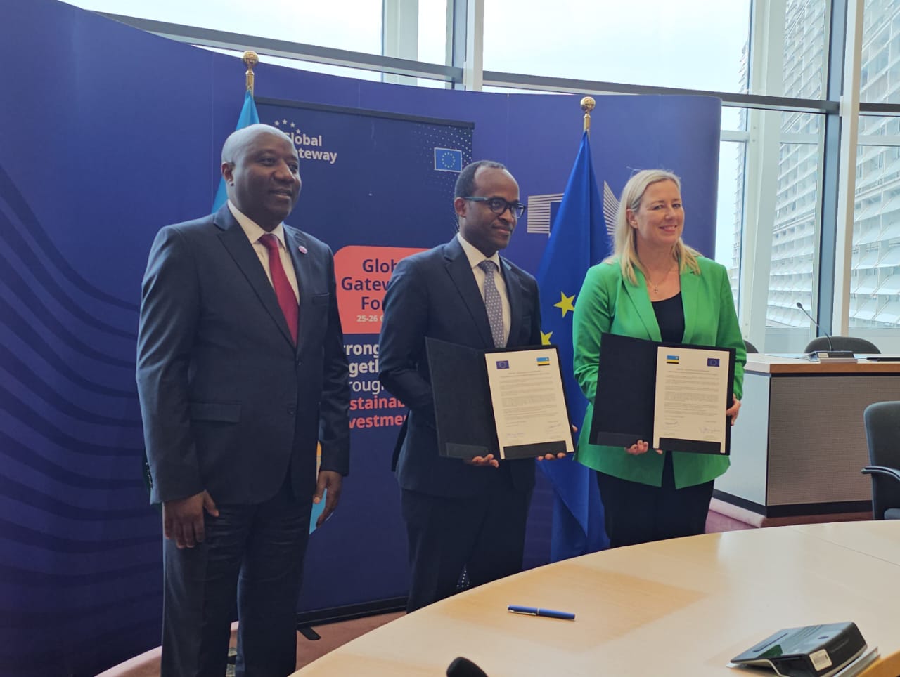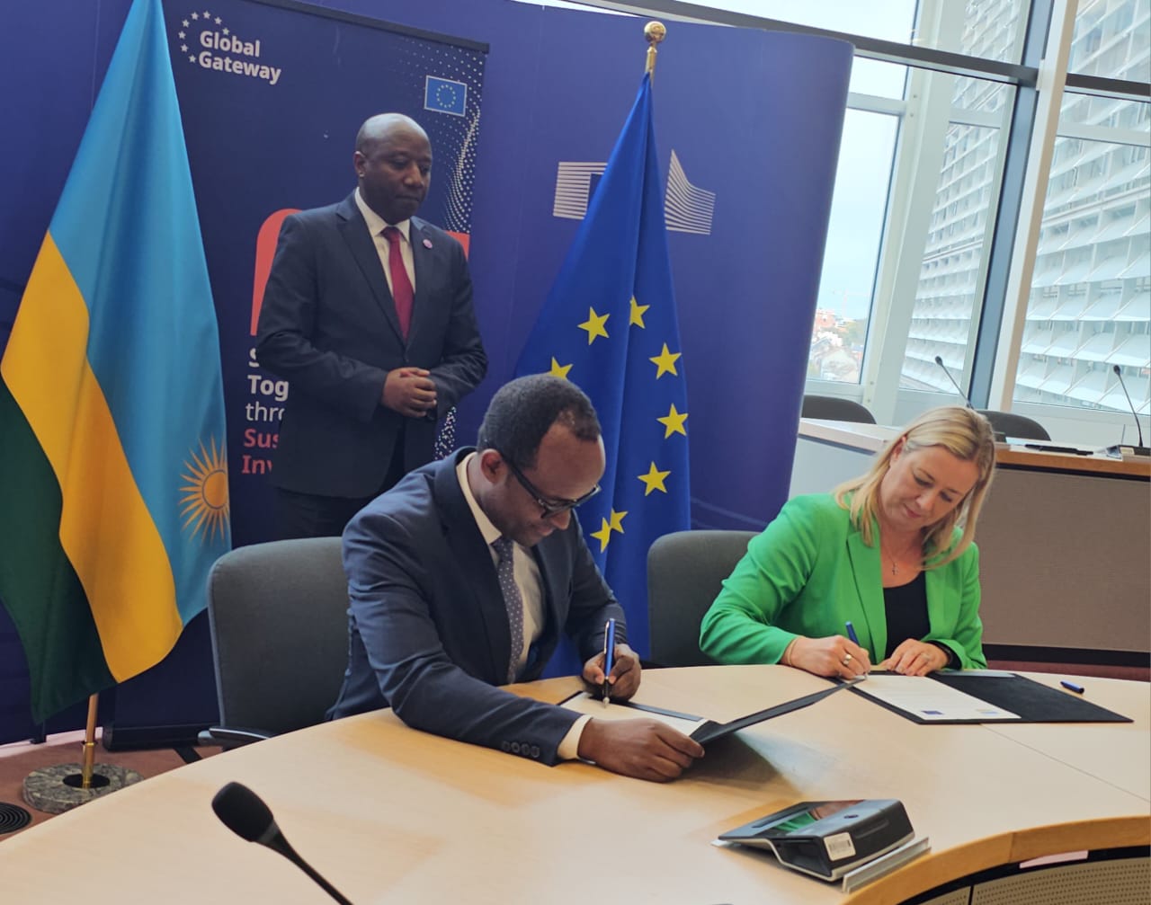 Minisitiri w’Intebe Dr. Edouard Ngirente ari kumwe na Komiseri mu Muryango w’Uburayi ushinzwe ubufatanye mpuzamahanga Jutta Urpilainen basinye amasezerano y’ubufatanye bw’impande zombi mu guteza imbere imikurire n’imyigire y’abana b’Abanyarwanda.