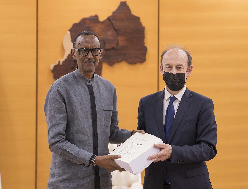 Iriya raporo yiswe “France, Rwanda and the Genocide Against the Tutsi”, Kagame yayishyikirijwe na Vincent Duclert, impuguke mu mateka yari iyoboye komisiyo y’ abantu 13 bakoze iyo raporo, bashyizweho na Perezida w’u Bufaransa Emmanuel Macron mu 2019.