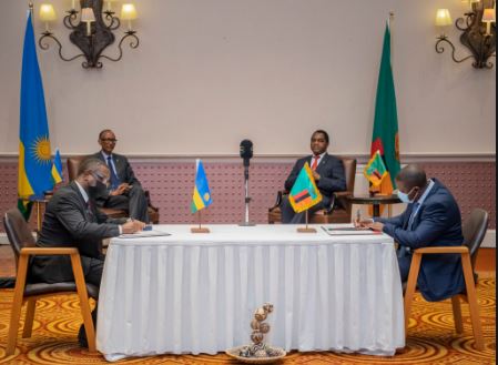 Perezida Paul Kagame na mugenzi wa Zambia Hakainde Hichilema bayoboye umuhango wo gusinya amasezerano y’ubufatanye mu nzego zirimo n’uburobyi. Izindi ibihugu byombi byiyemeje guffatanyamo ni uburezi, gufasha mu gucyemura ikibazo cy’abimukira, ubworozi, guteza imbere ishoramari n’ubuhinzi.