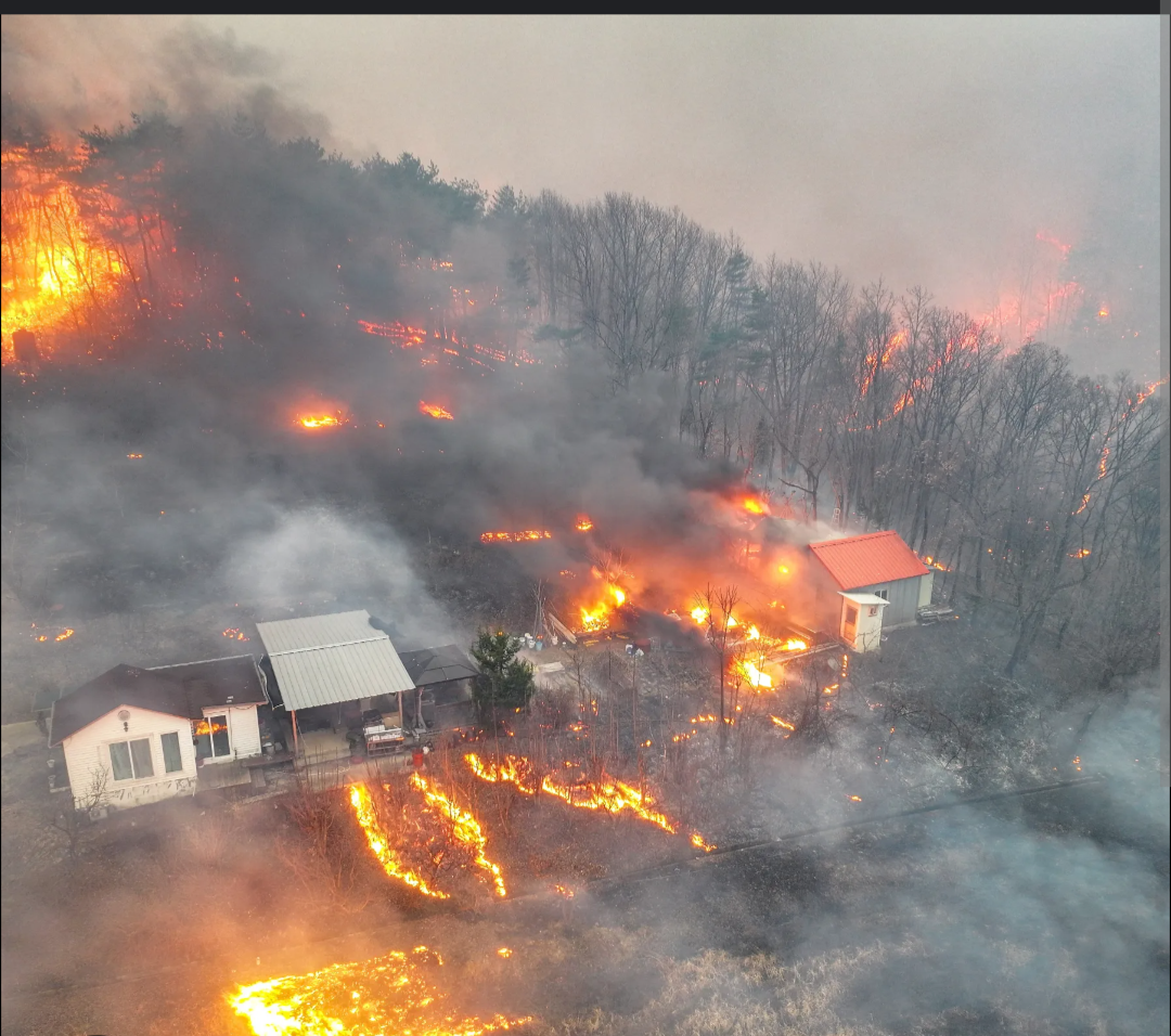 Inkongi ivugwa hano yadutse mu gace ka Sancheong, umuyaga uyikwirakwiza byihuse.