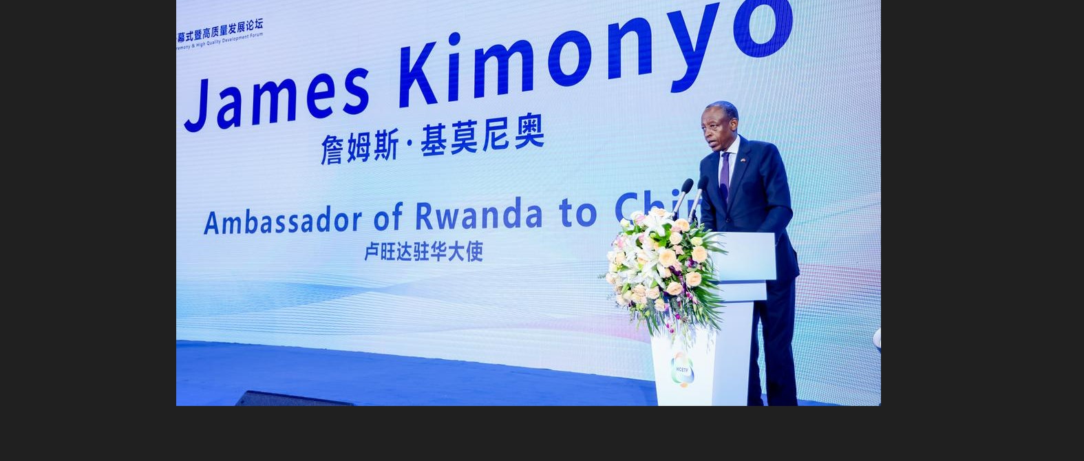 Mu Ijambo Ambasaderi w’u Rwanda mu Bushinwa James Kimonyo yagejeje ku bitabiriye Inama mpuzamahanga y’uburyo u Bushinwa bukorana n’inshuti zabwo ubucuruzi bukoresha ikoranabuhanga, yavuze ko u Rwanda rwishimira ishyirwa mu bikorwa ry’amasezerano arebana n’ubwo bucuruzi.