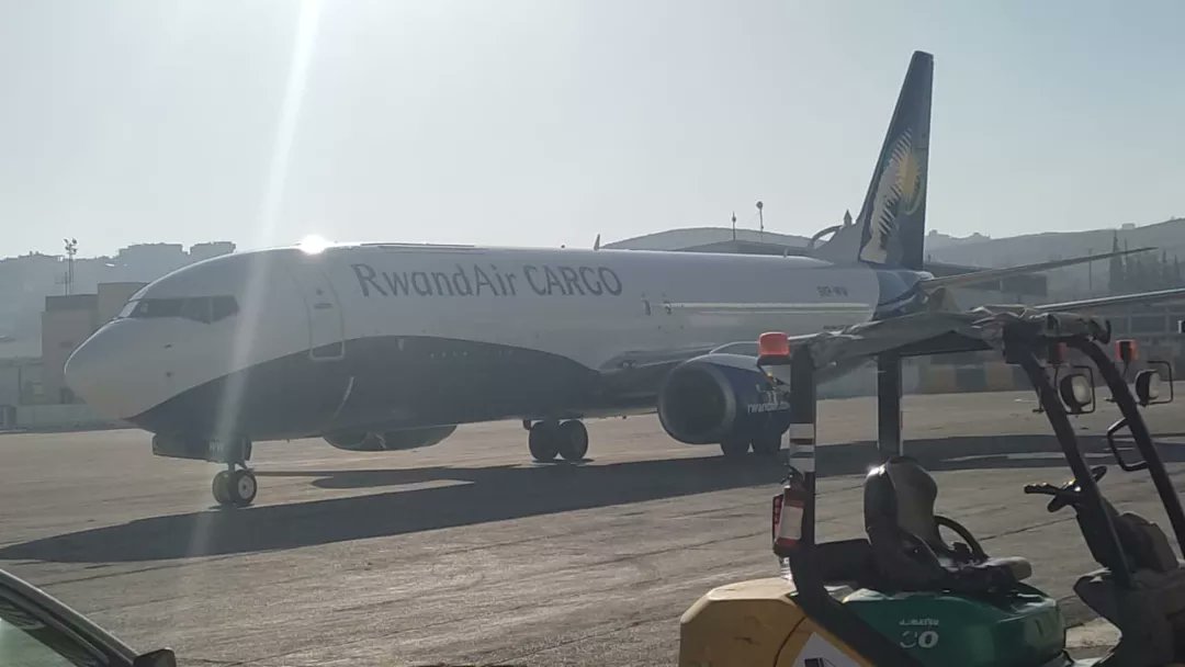 Indege y’u Rwanda itwara imizigo ya Rwandair Cargo niyo yajyanye iriya mfashanyo iyigusha ku kibuga cy’indege cy’ubwami bwa Jordania.