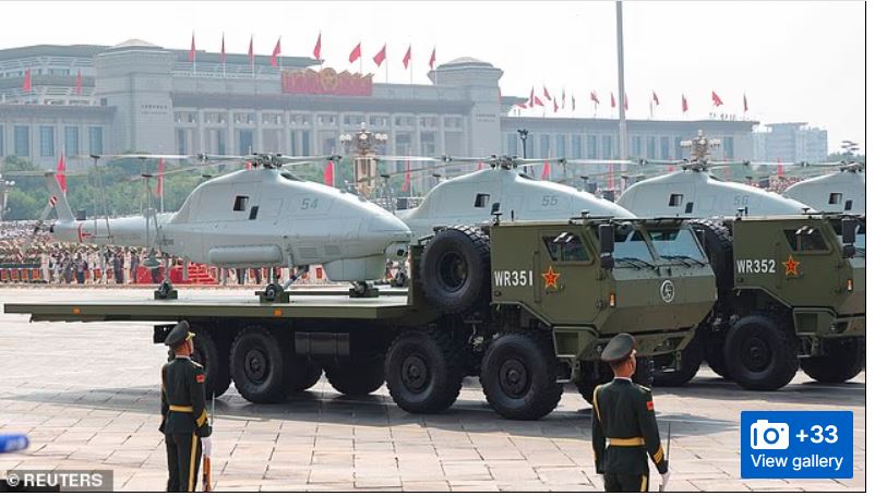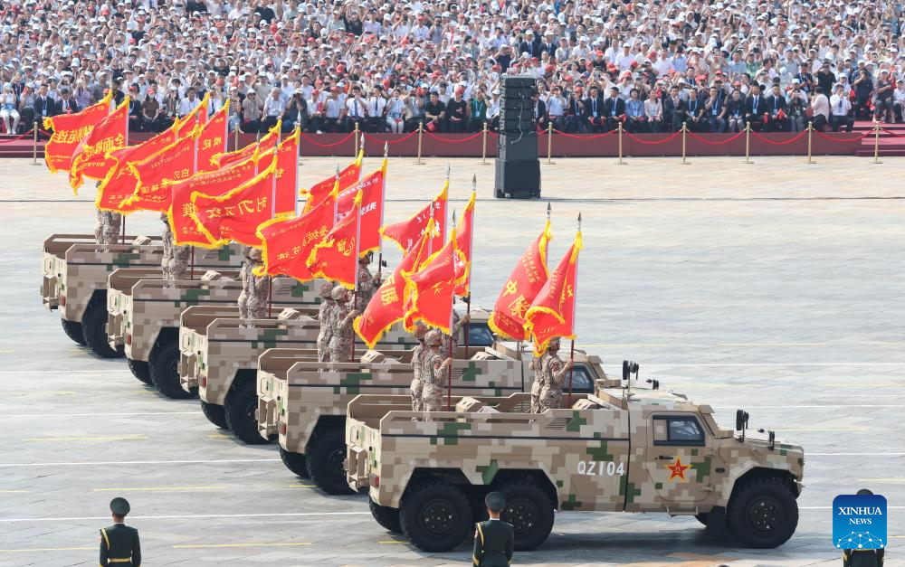 Umwiyereko wa gisirikare wakozwe n’ingabo z’Ubushinwa witabiriwe n’abasirikare 10,000, indege 100 z’intambara, ibifaro, ibisasu bya missiles na drones nyinshi n’ibindi.