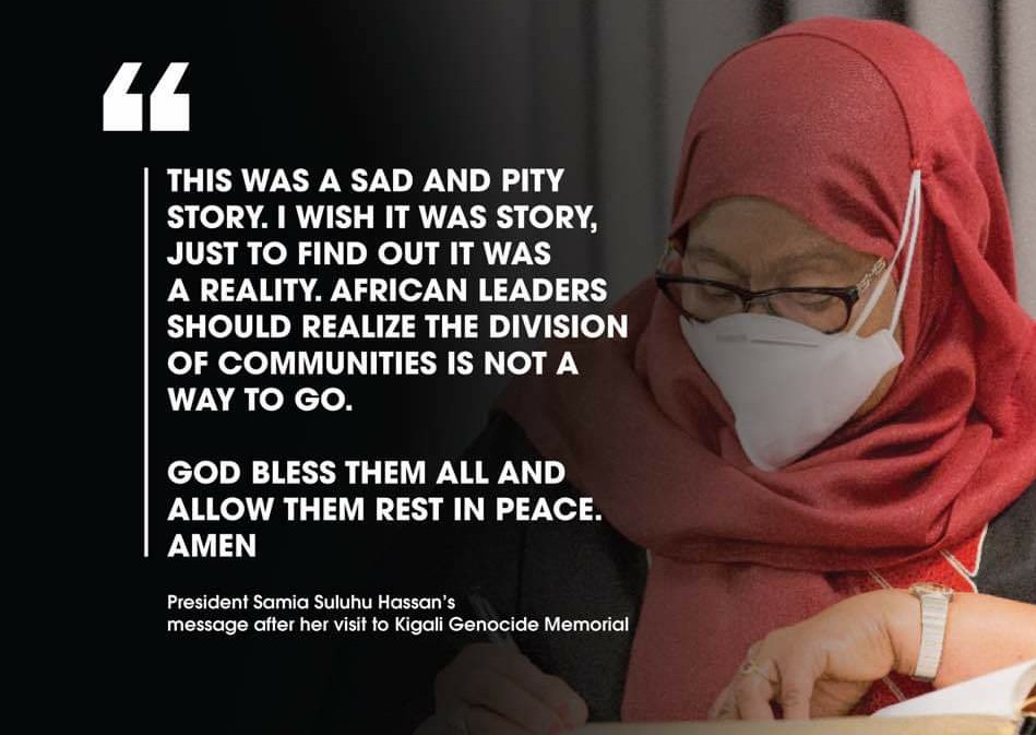 Ubutumwa bwa Samia Suluhu Hassan bwarangiye asaba Imana gukomeza kwakira roho z’abaruhukiye kuri ruriya rwibutso mu mahoro.