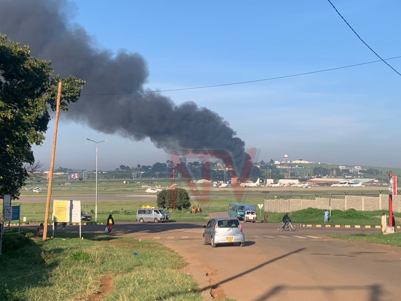 Abashinzwe kurwanya inkongi muri Uganda bazindukiye mu kazi kenshi ko kuzimya inkongi yafashe imwe mu nyubako zo ku kibuga cy’indege cya Entebbe.