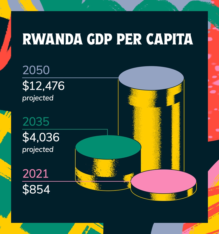 Ku byerekeye u Rwanda, kuva mu mwaka wa 2017 kugera mu 2024, ubukungu bwakomeje kuzamuka kuko mu myaka irindwi umusaruro mbumbe wazamutse hafi ku mpuzandengo ya 7% uva kuri miliyari Frw 7.694 z’amafaranga y’u Rwanda muri 2017/2018 bugera kuri miliyari 18.785 mu mwaka wa 2024.