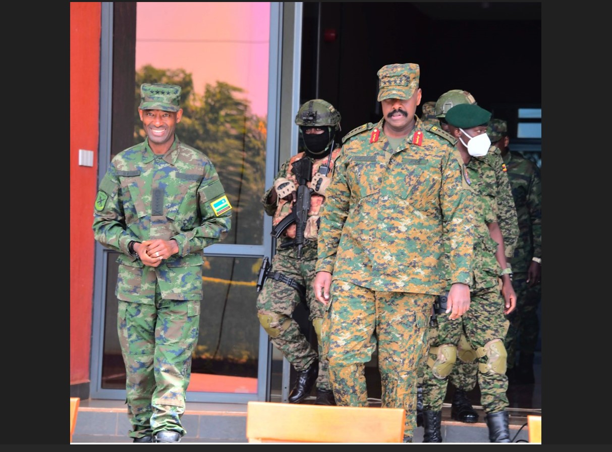 General Mubarakh Muganga uyobora ingabo z’u Rwanda yagiye muri Uganda kuganira na mugenzi we uyobora iza Uganda General Muhoozi Kainerugaba ku ngingo zirebana n’imikorere ya gisirikare ku mpande zombi.