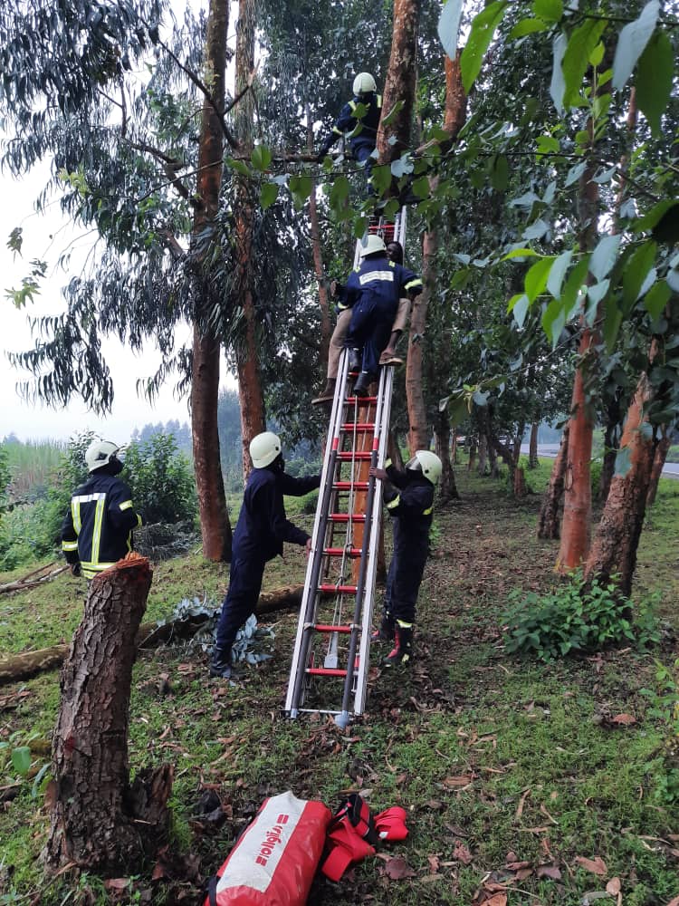 Ishami rya Polisi y’u Rwanda rishinzwe kuzimya inkongi z’umuriro n’ubutabazi kubari mu kaga ryatabaye umuturage witwa Imanizibyose Eric Antoine wari wahagamye mu giti akakivunikiramo mu gihe yacyuriraga.