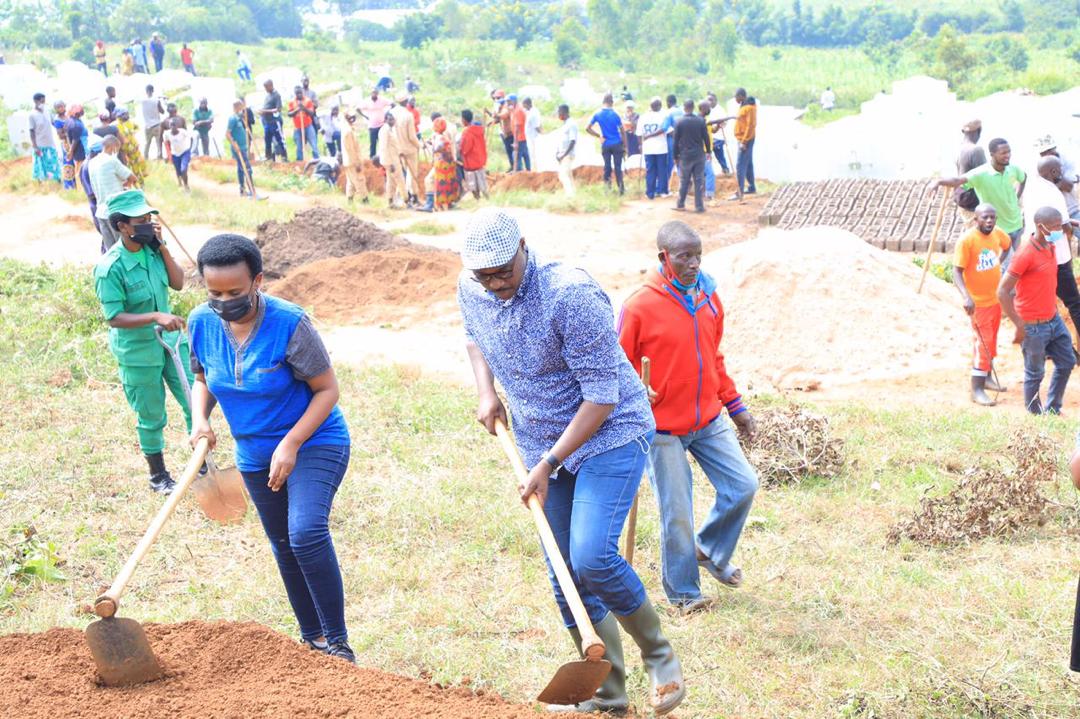 Pudence Rubingisa yakoreye Umuganda rusange mu Mudugudu wa Rukore, Akagari ka Busanza, Umurenge wa Kanombe mu Karere ka Kicukiro.