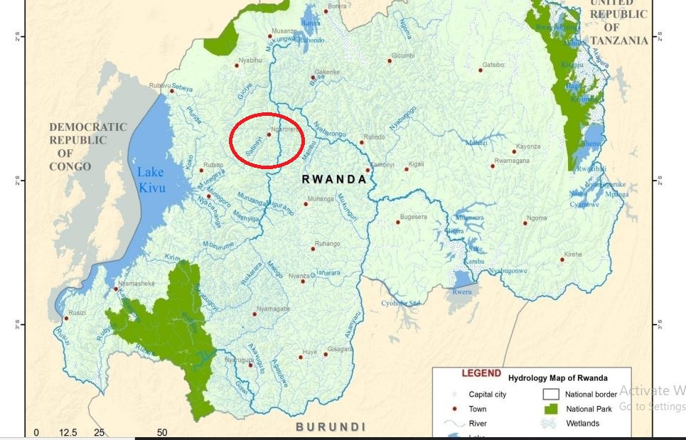 Amazi y’iriya migezi amanuka aturuka mu Karere ka Rutsiro agaca mu mirenge irimo Umurenge wa Sivu, uwa Bwira ndetse n’uwa Muhororo akabona kwiroha muri Nyabarongo.