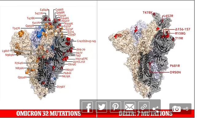 Delta yari ifite ubwihindurize burindwi mu gihe Omicron ifite ubwihindurize 32
