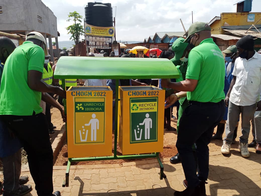 Hagati aho, hari amafoto yatangajwe n’Ubuyobozi bw’Umurenge wa Masaka mu karere ka Kicukiro yerekana hashyirwaho ahantu hagenewe kujugunywa imyanda handitseho CHOGM.