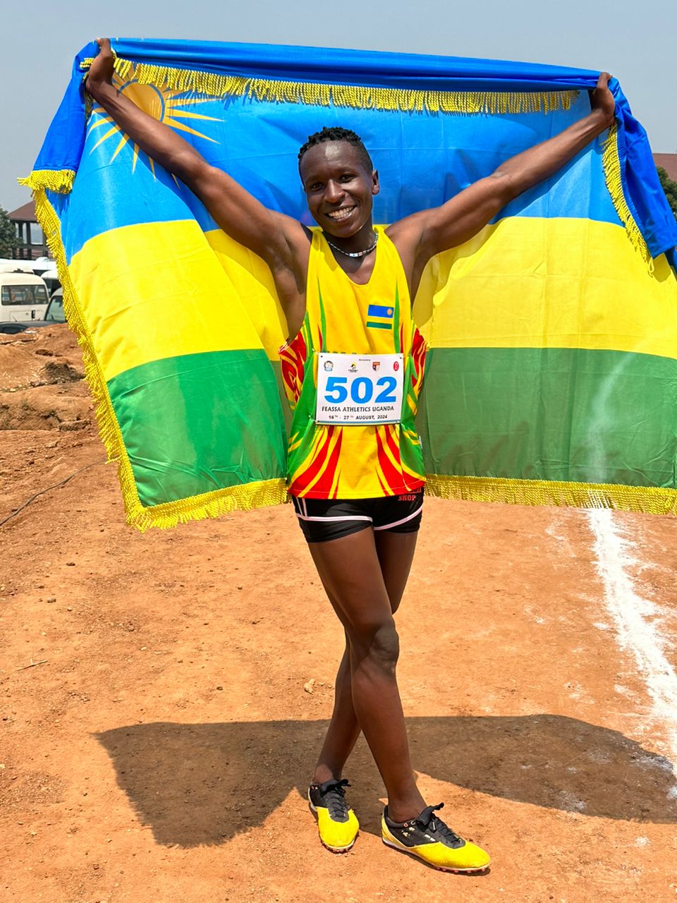 Magnifique Umutoniwase yegukanye umudali wa zahabu mu gusiganwa ku maguru muri metero 100 mu irushanwa riri kubera muri Uganda.