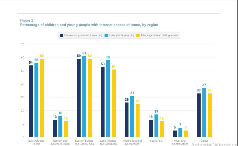 Indi raporo yiswe How Many Children and Youth Have Internet Access At Home yakozwe na UNICEF yerekana ko abana babiri ku bana batatu bafite hagati y’imyaka itatu n’imyaka 17 y’amavuko( bangana na miliyari 1,3) ndetse n’urubyiruko rufite hagati y’imyaka 15 na 24 y’amavuko batagira murandasi iwabo.