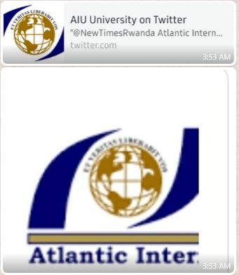N’ubwo abanditse biriya bavuga ko ari abo mu buyobozi bukuru bw’iriya Kaminuza, iyo urebye ikirango cyaje gikurikiye iriya Tweet yabo ubona ko gihabanye n’ikindi gisa nacyo cyemeza ko gihagarariye Kaminuza Atlantic International University.